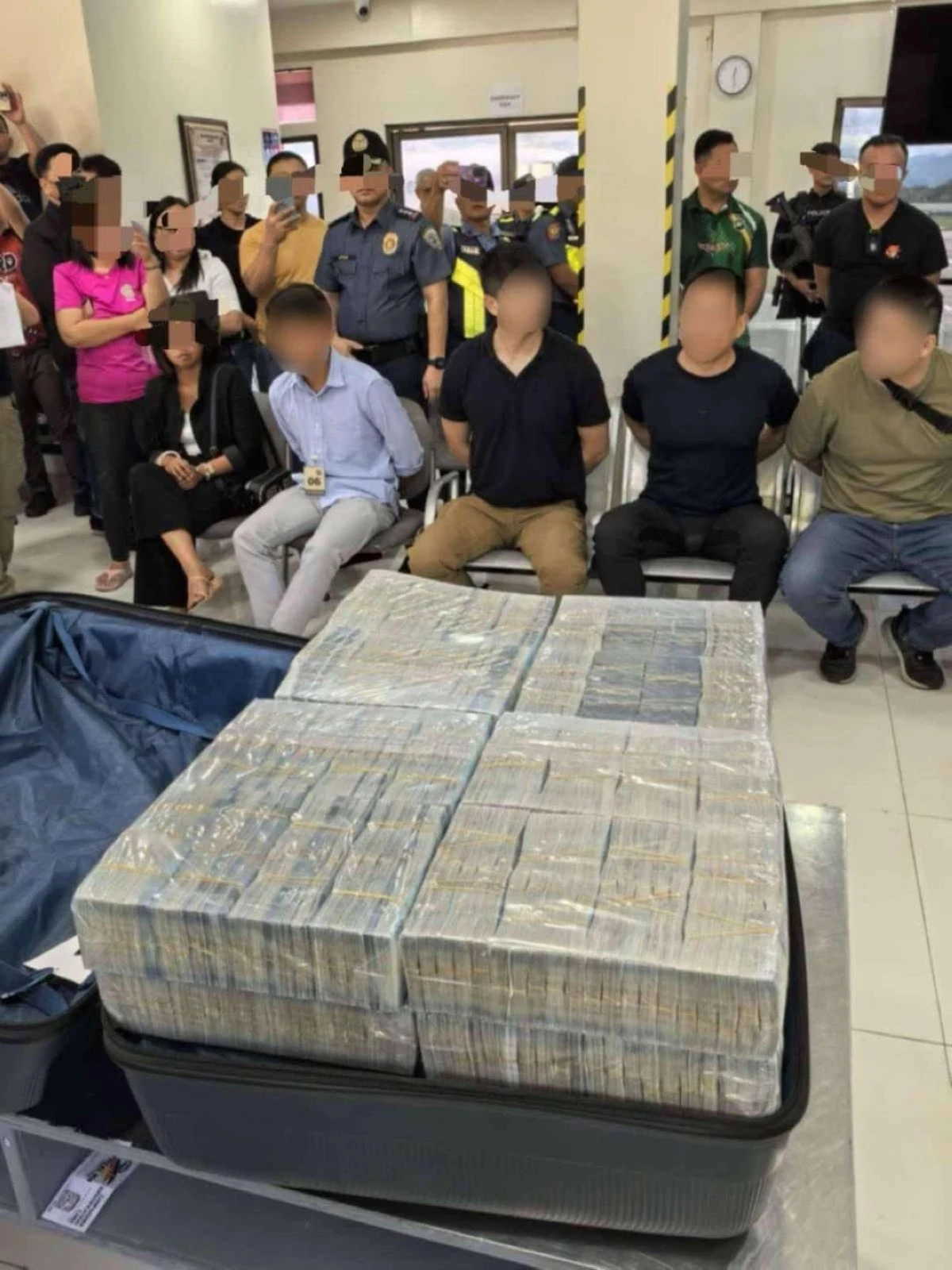 7つの荷物から1,000ペソ紙幣の束が押収され、