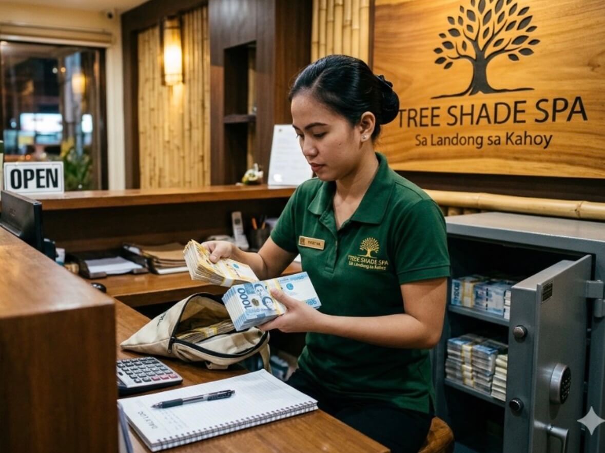 セブ市ラホッグ地区サリナス・ドライブにあるマッサージ・ツリーシェイドスパの受付係が、2026年3月11日(水)午前8時、窃盗容疑で逮捕!