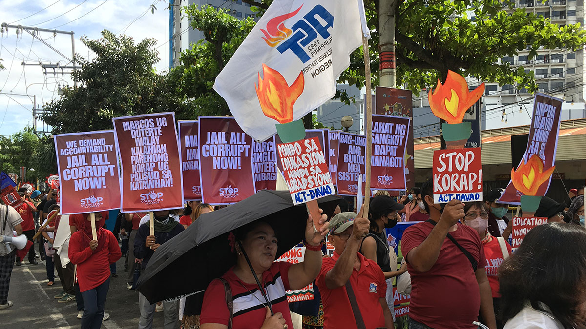 2025年11月30日の「ボニファシオの日」に、フィリピンのダバオ市で約300人の抗議者が反汚職デモに参加し、マルコス大統領とサラ・ドゥテルテ副大統領を「汚職の王と女王」と呼びました。