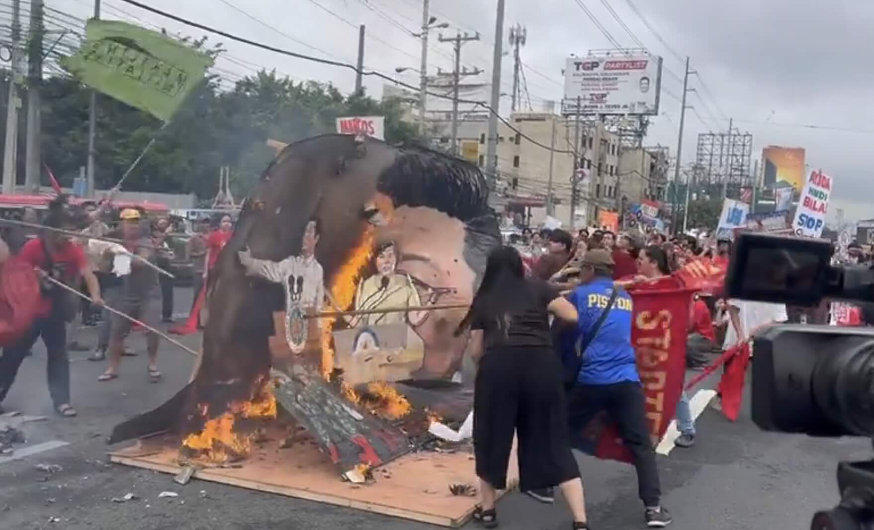 路上でマルコス大統領の模型等を