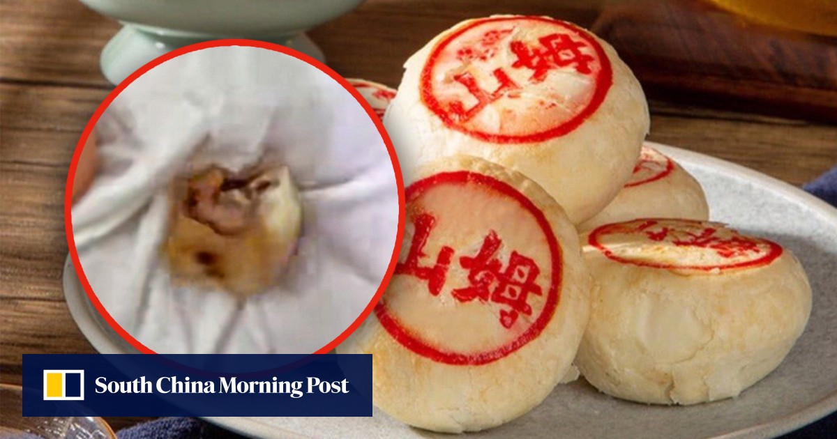 動画では半分かじられた肉入り月餅と