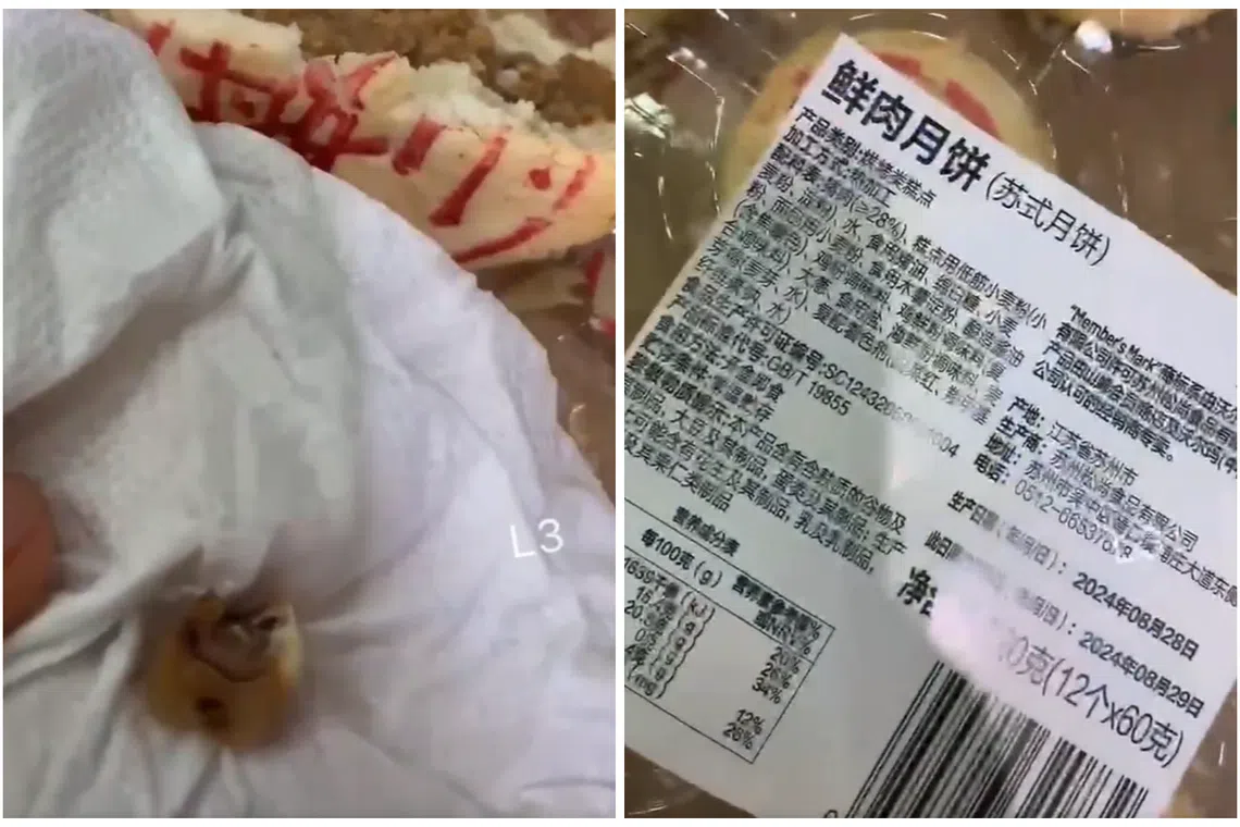 動画では半分かじられた肉入り月餅と