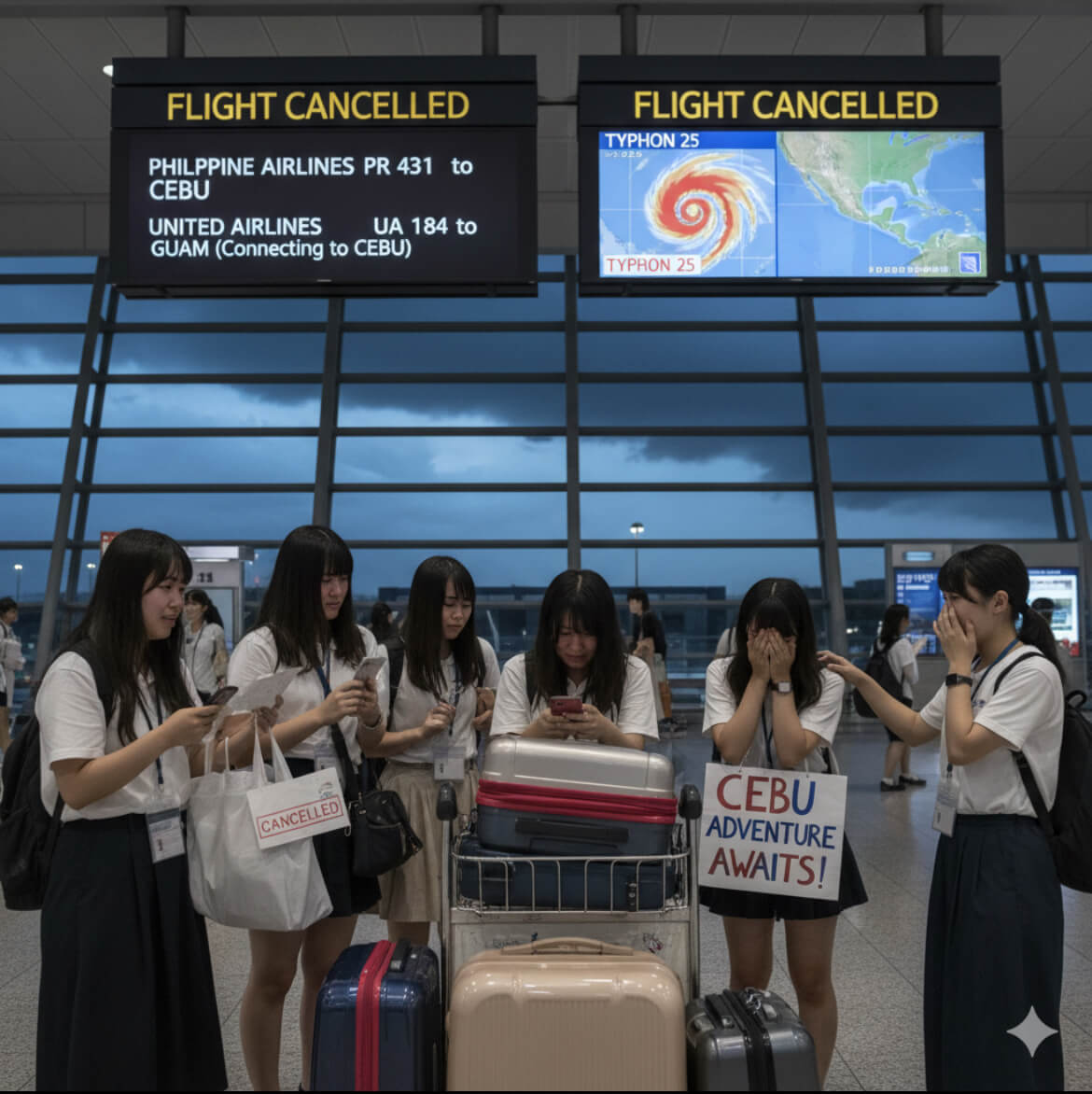 合計75便以上が欠航となっており、マクタン・セブ国際空港(MCIA)からの公式発表では、すべての乗客に航空会社に直接連絡して振替便や払い戻しの手続きを行うよう呼びかけています。